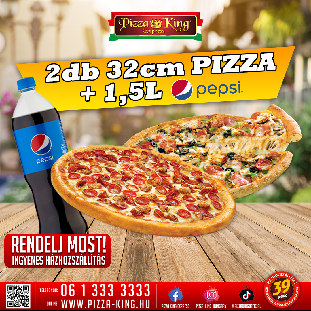 2 darab normál 32cm pizza, 1,5l pepsivel