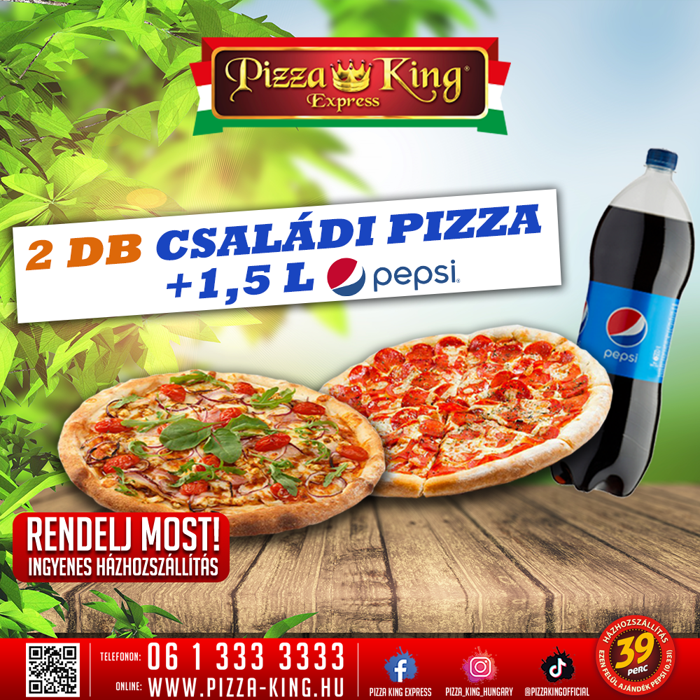 (2db 40cm-es normál pizza + 1, 5L Pepsi)
